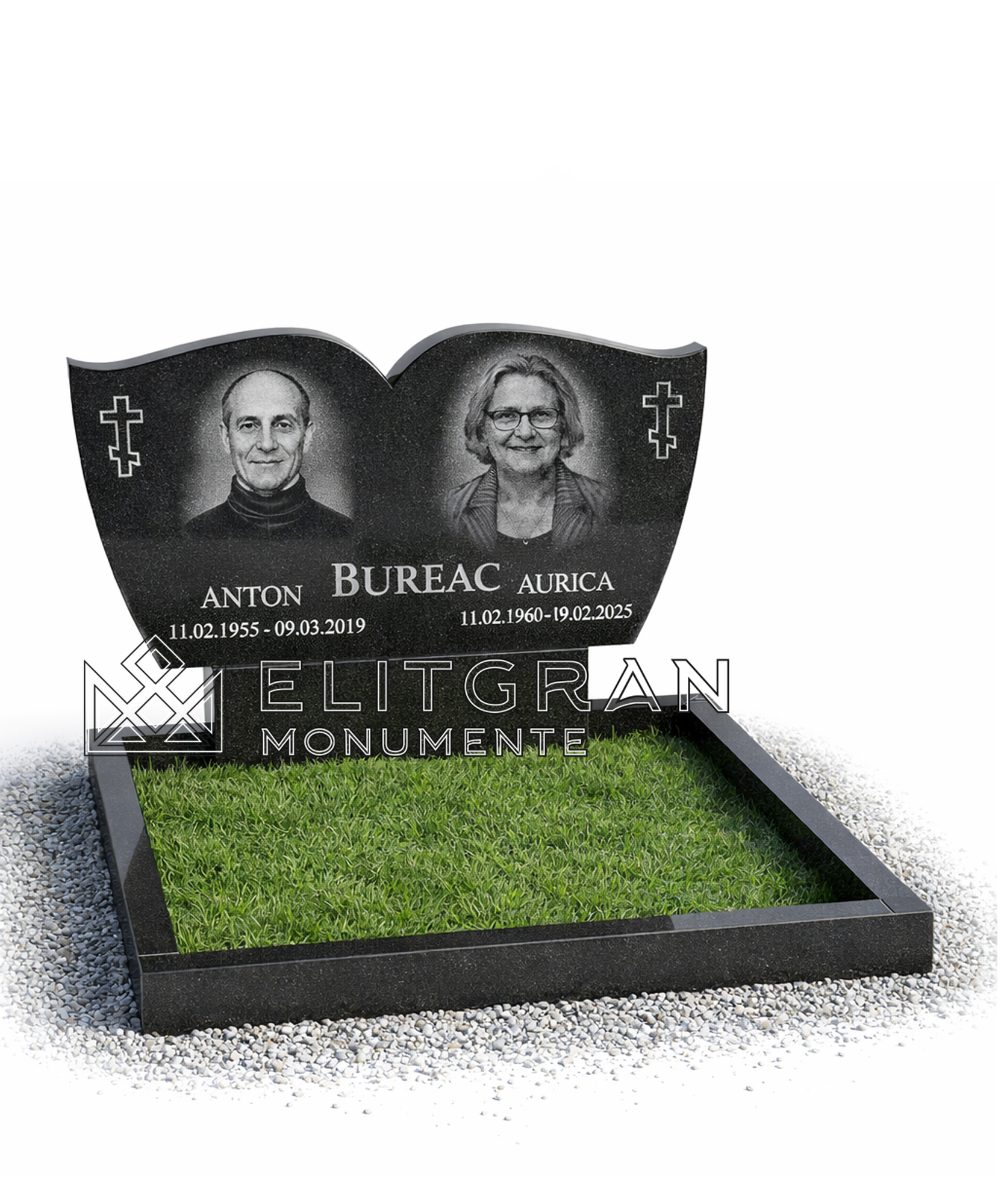 Этот двойной надгробный памятник выполнен из украинского гранита высшего качества «Габбро».